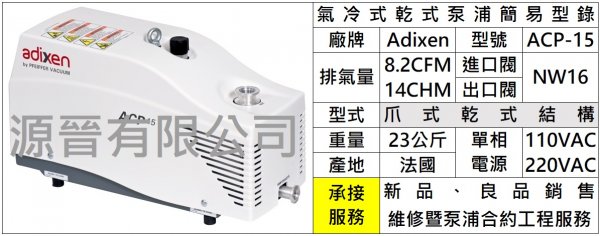:ACP15氣冷式乾泵-簡易型錄
