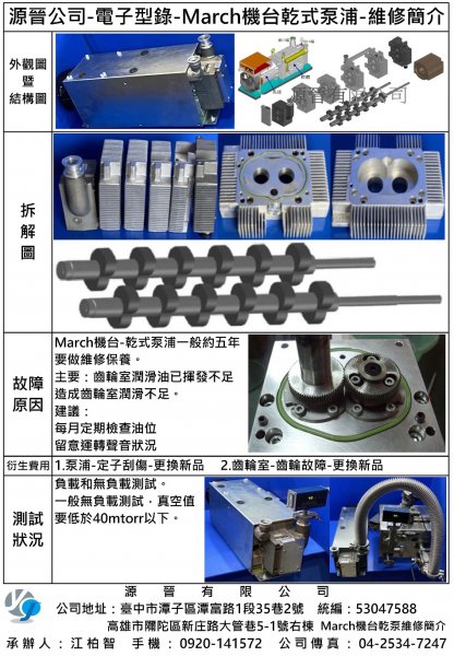 我司有提供March機台-乾式泵浦維修及現場維修服務。歡迎電洽詢問。