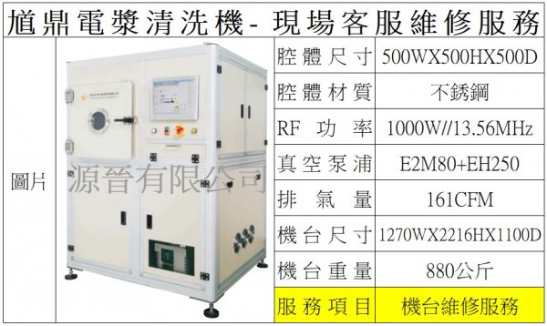 本司-針對馗鼎-電漿清洗機,現場機台維修服務,歡迎電洽詢問。